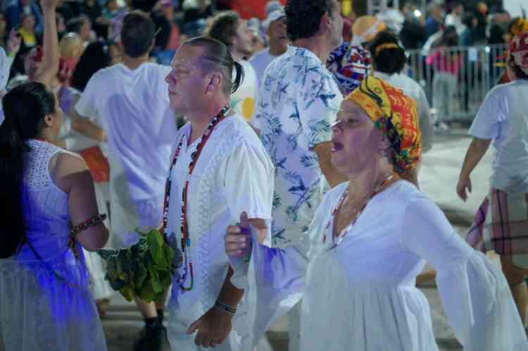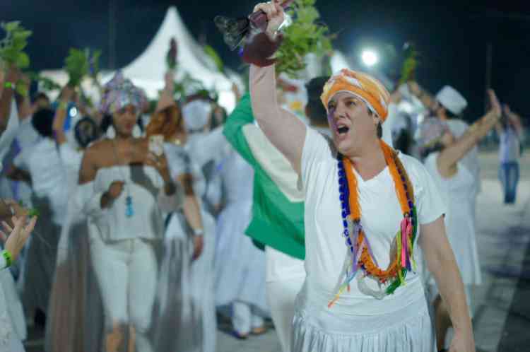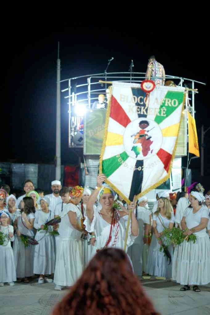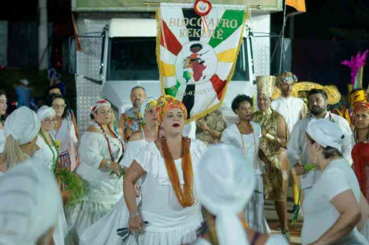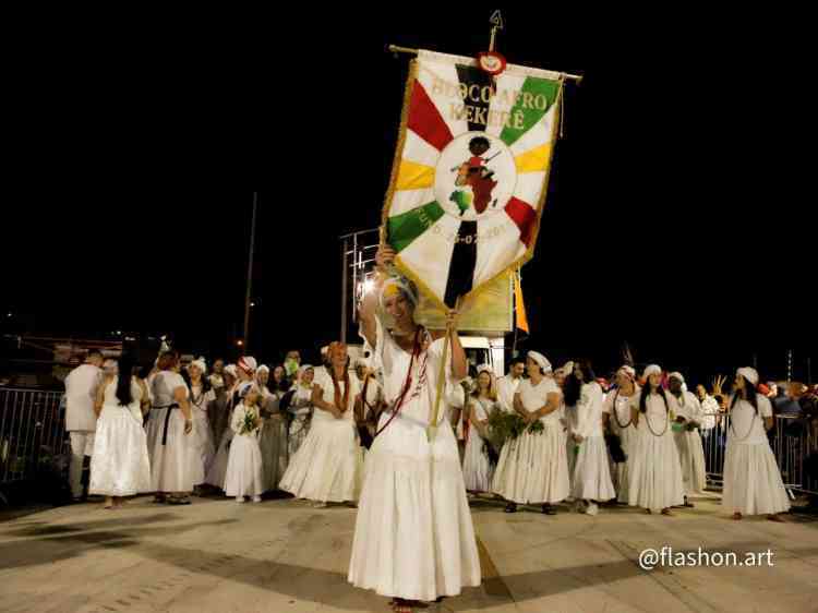 Com o tradicional afoxé, bloco abençoa com alegria a festa na avenida.