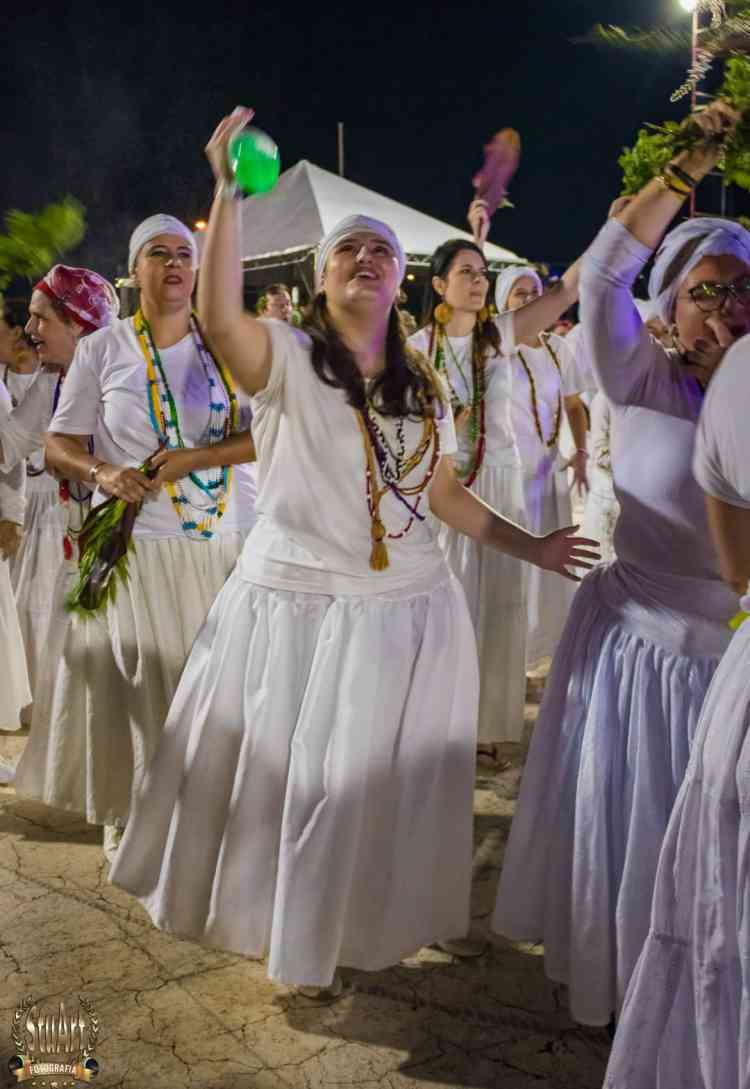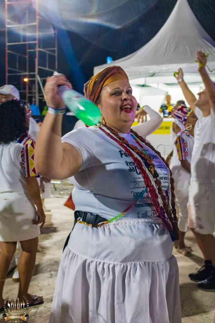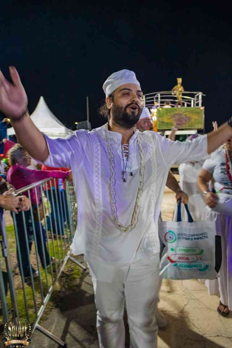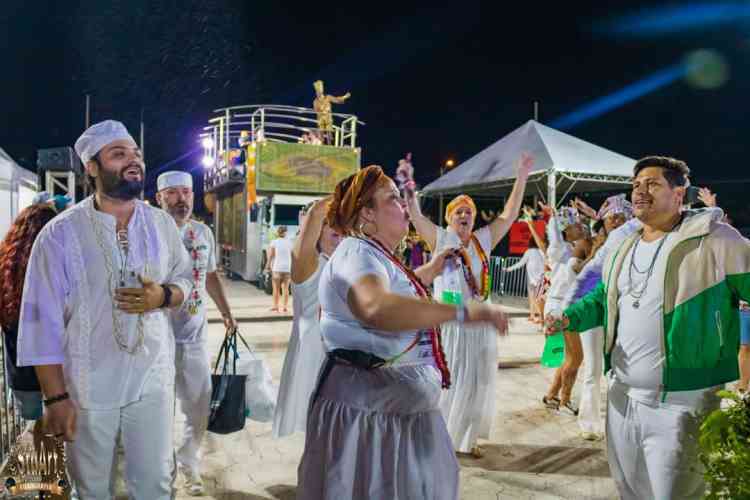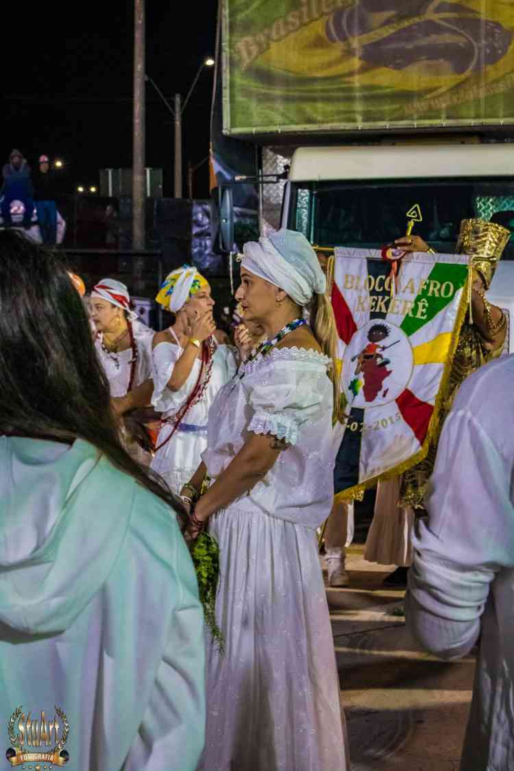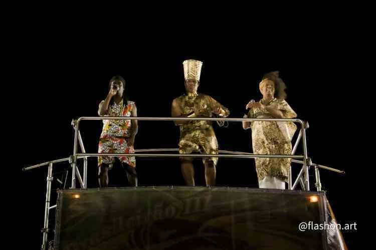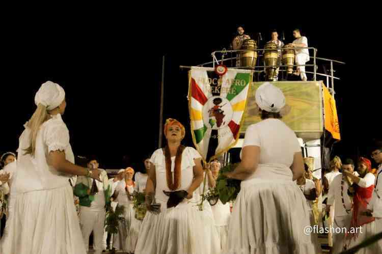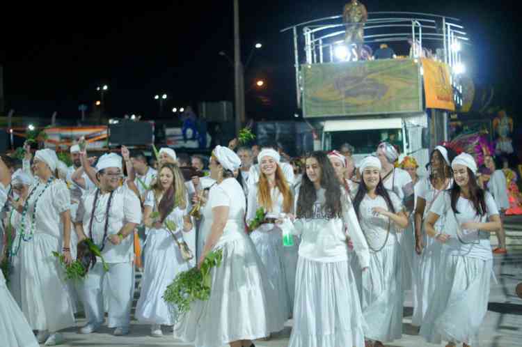 Com um cortejo de afoxé formado por integrantes do Barracão de Pai José de Aruanda, que pediram as bençãos e proteção dos Orixás para as escolas, o bloco percorreu a avenida e animou os mais de dois mil presentes.