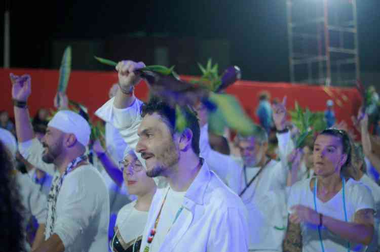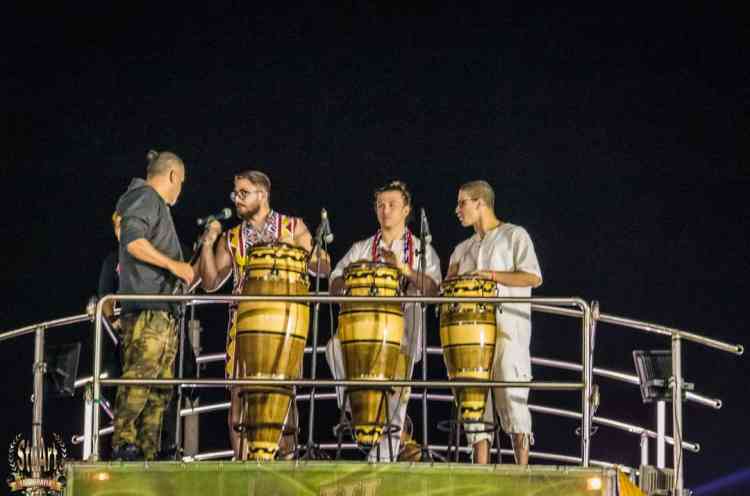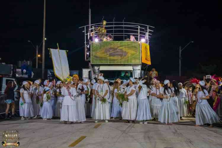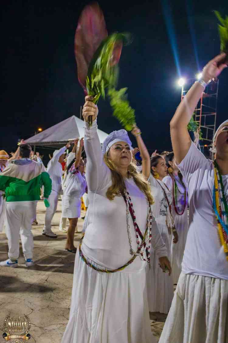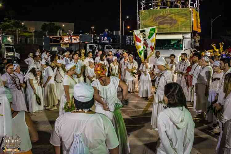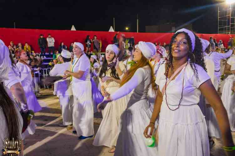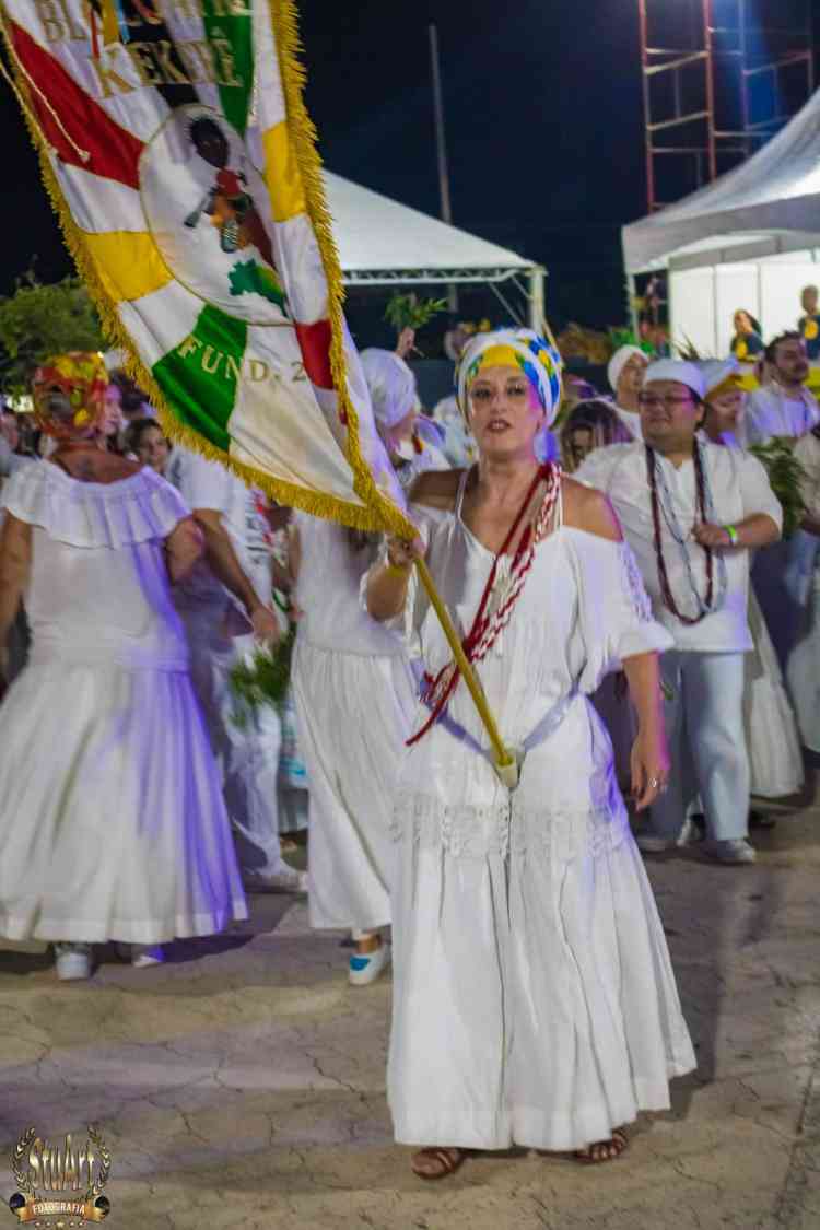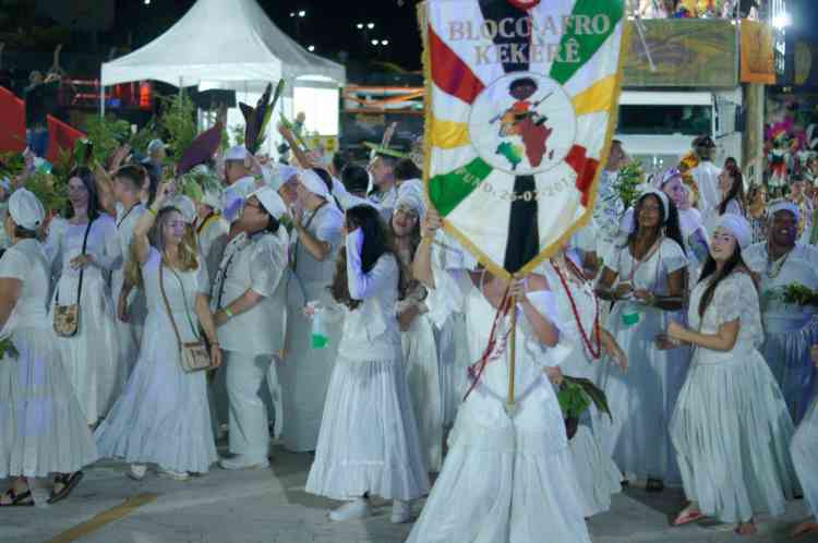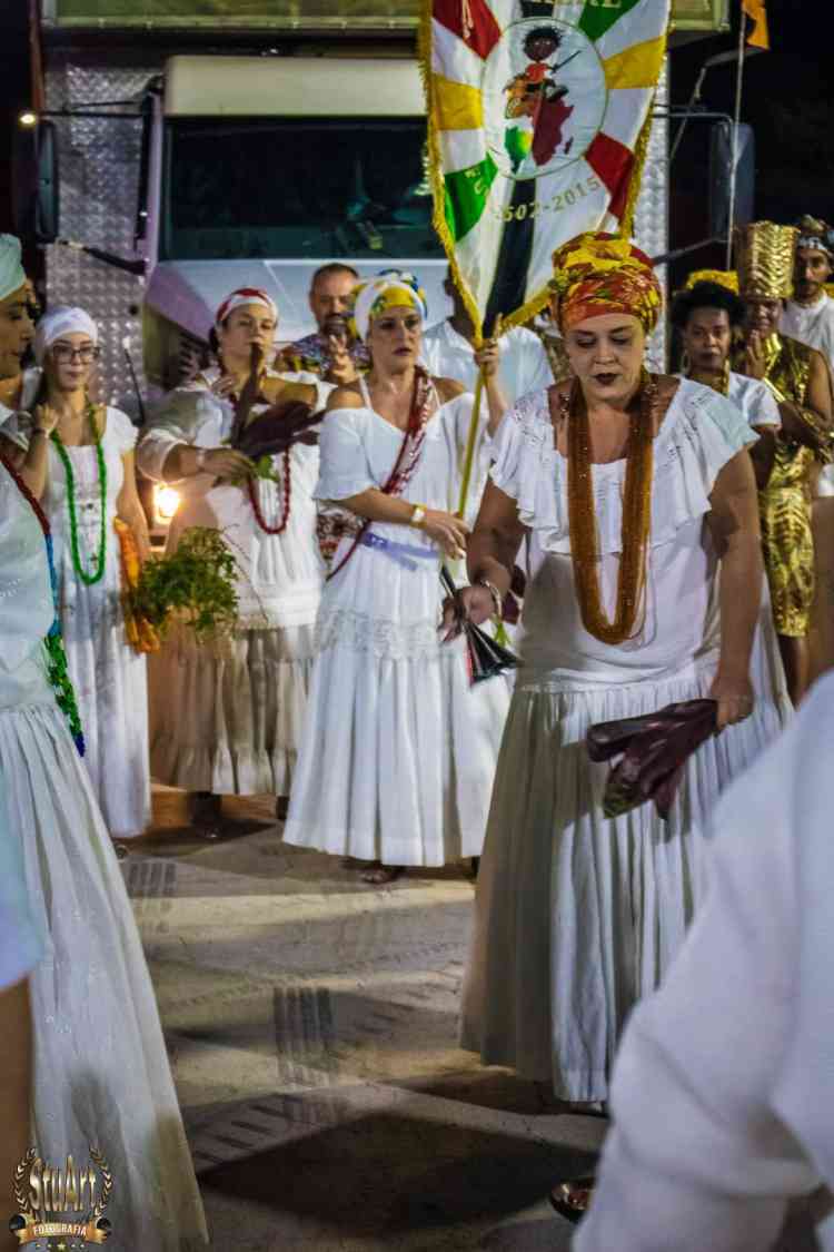 Com um cortejo de afoxé formado por integrantes do Barracão de Pai José de Aruanda, que pediram as bençãos e proteção dos Orixás para as escolas, o bloco percorreu a avenida e animou os mais de dois mil presentes.